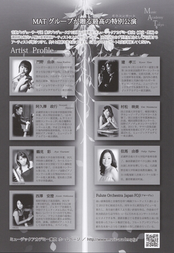9月23日(祝・月)に、私が講師として通っているミュージックアカデミー東京の講師達によるガラコンサートに出演いたします。